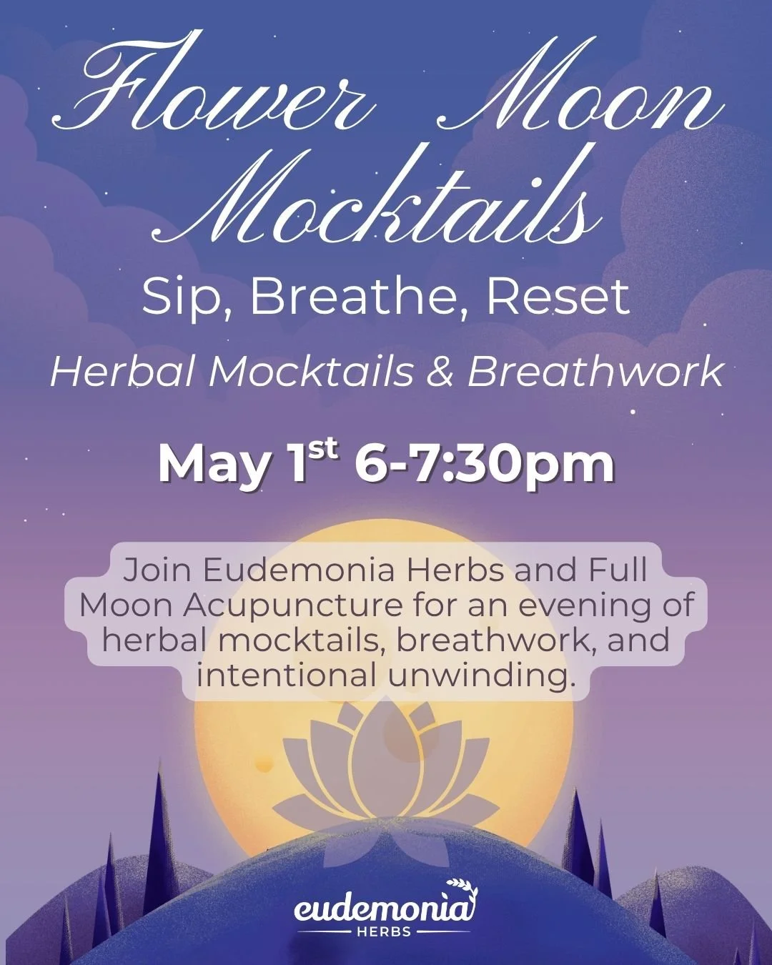 From there, Brittany Williams of Eudemonia Herbs will guide you through an interactive herbal mocktail experience where flavor meets function. You’ll explore a handful of thoughtfully selected herbs that support relaxation, mood, and overall well-being, then learn how to turn them into beautifully balanced, alcohol-free drinks.